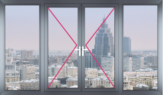 Специальный крепеж позволяет сочетать в одном проеме профиль разных серий. Он поставляется белым или цветным — в любом оттенке RAL-палитры.